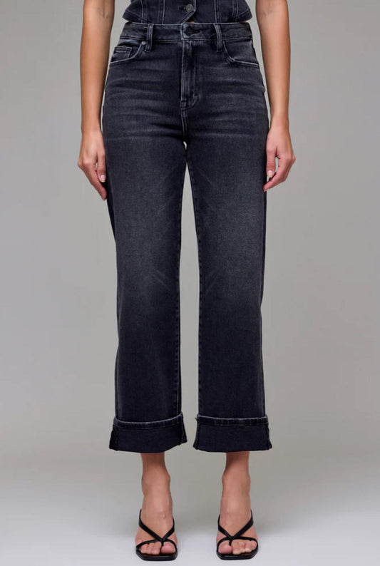 Hidden- Ella 27" Cuffed Straight Denim-Charc