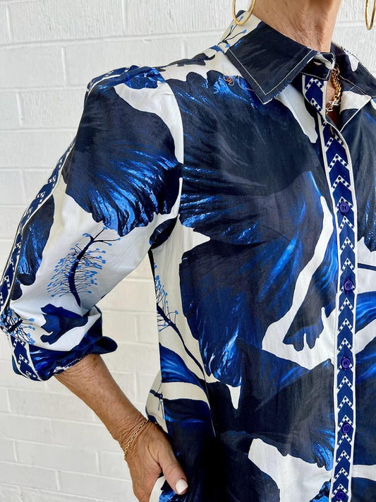 Ava Dress- Indigo Lillies