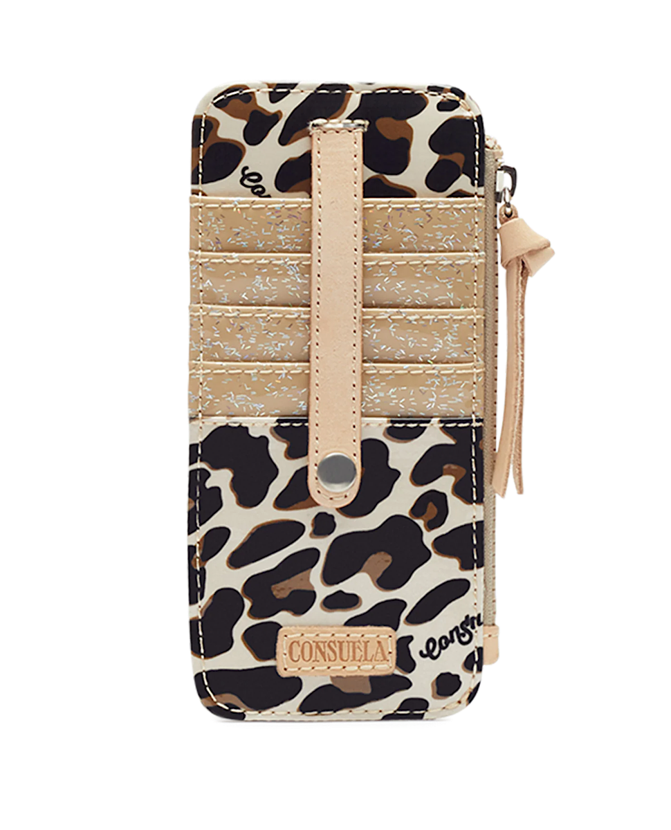 Perfect for a night out or catching a show, this card organizer makes it easy to access your cards, ID and quick cash. A mix of color and print, this card organizer features our Mona ConsuelaCloth™ .