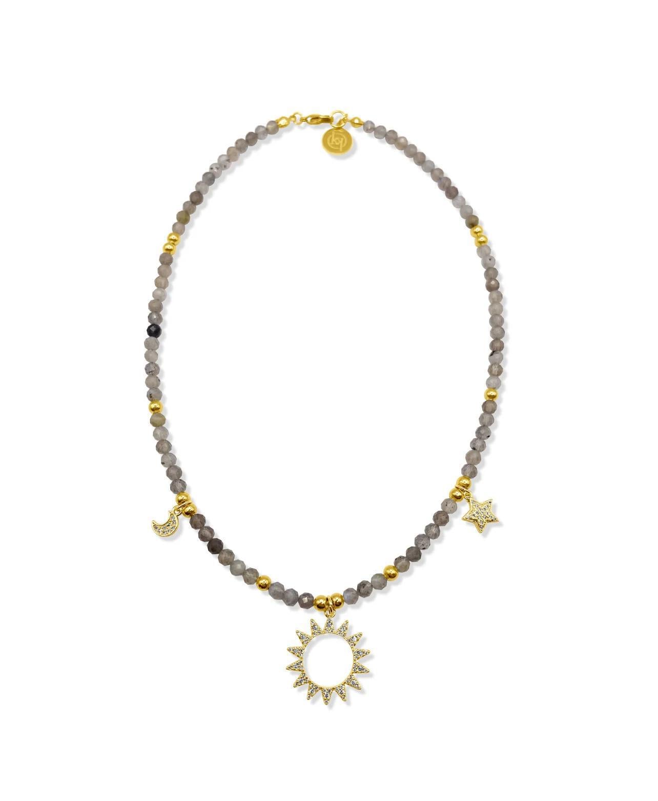 Beaded pavé sunburst necklace with charms