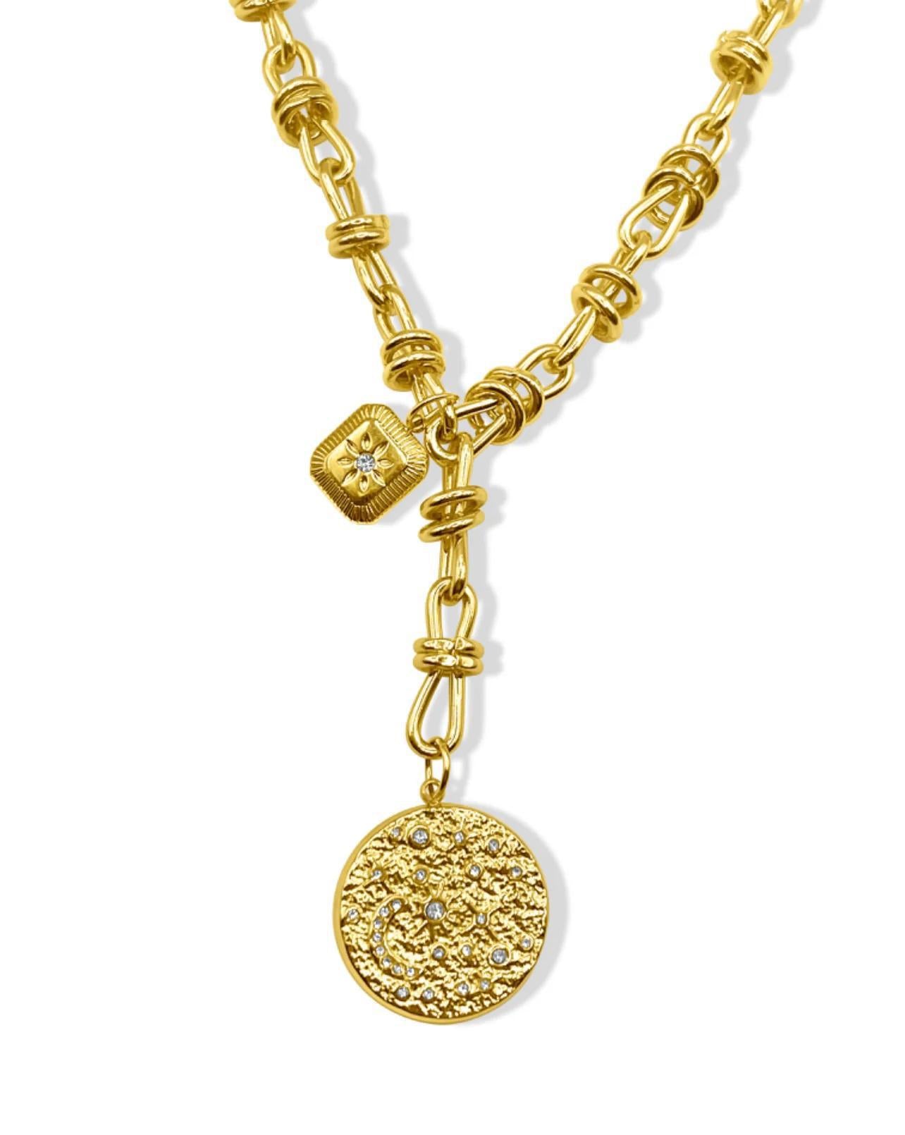 Enhance your fashion game with Stella - the ultimate lariat charm necklace. Featuring 100% waterproof design, it's perfect to elevate your looks on any occasion. The 18" chain comes with a 3" extender for a comfortable fit.
