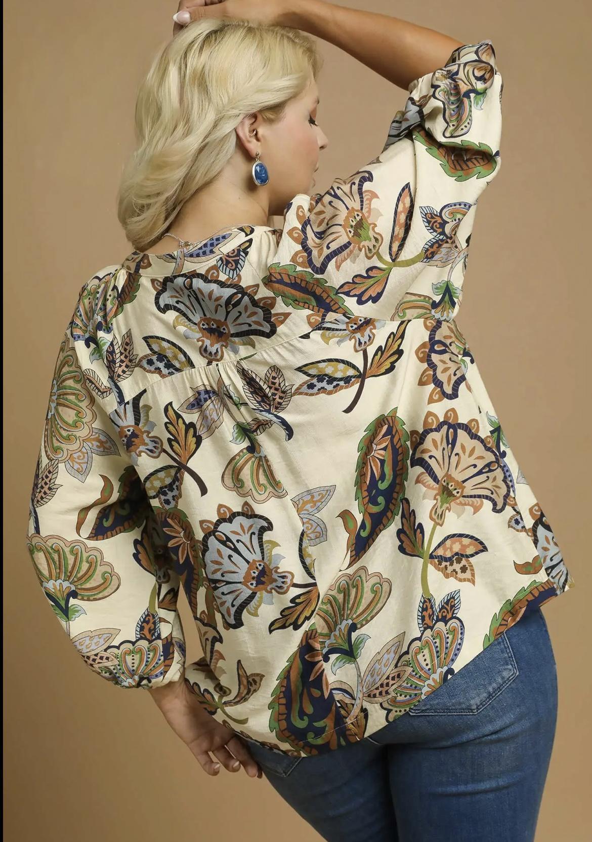 Paisley Puff Sleeve Blouse
