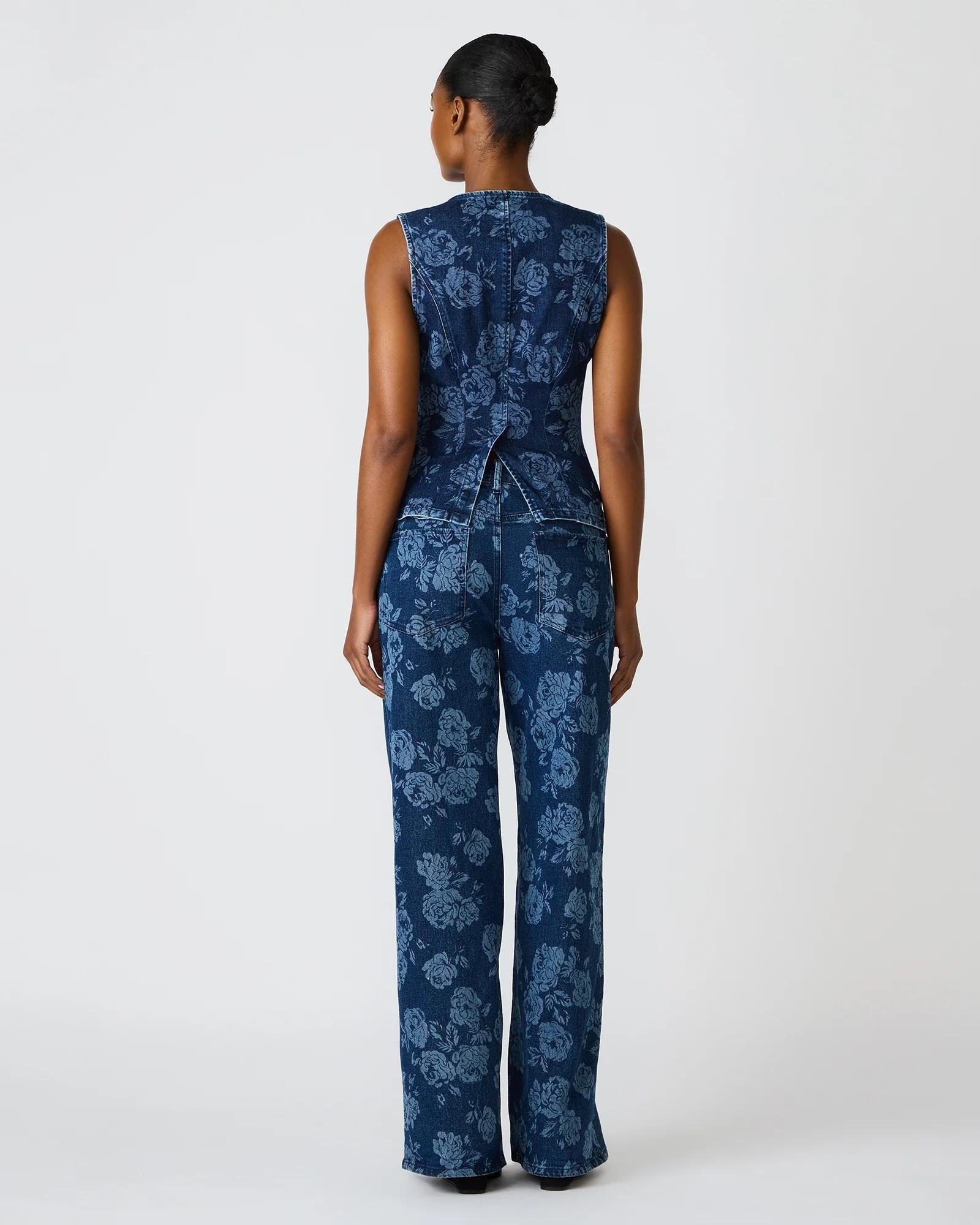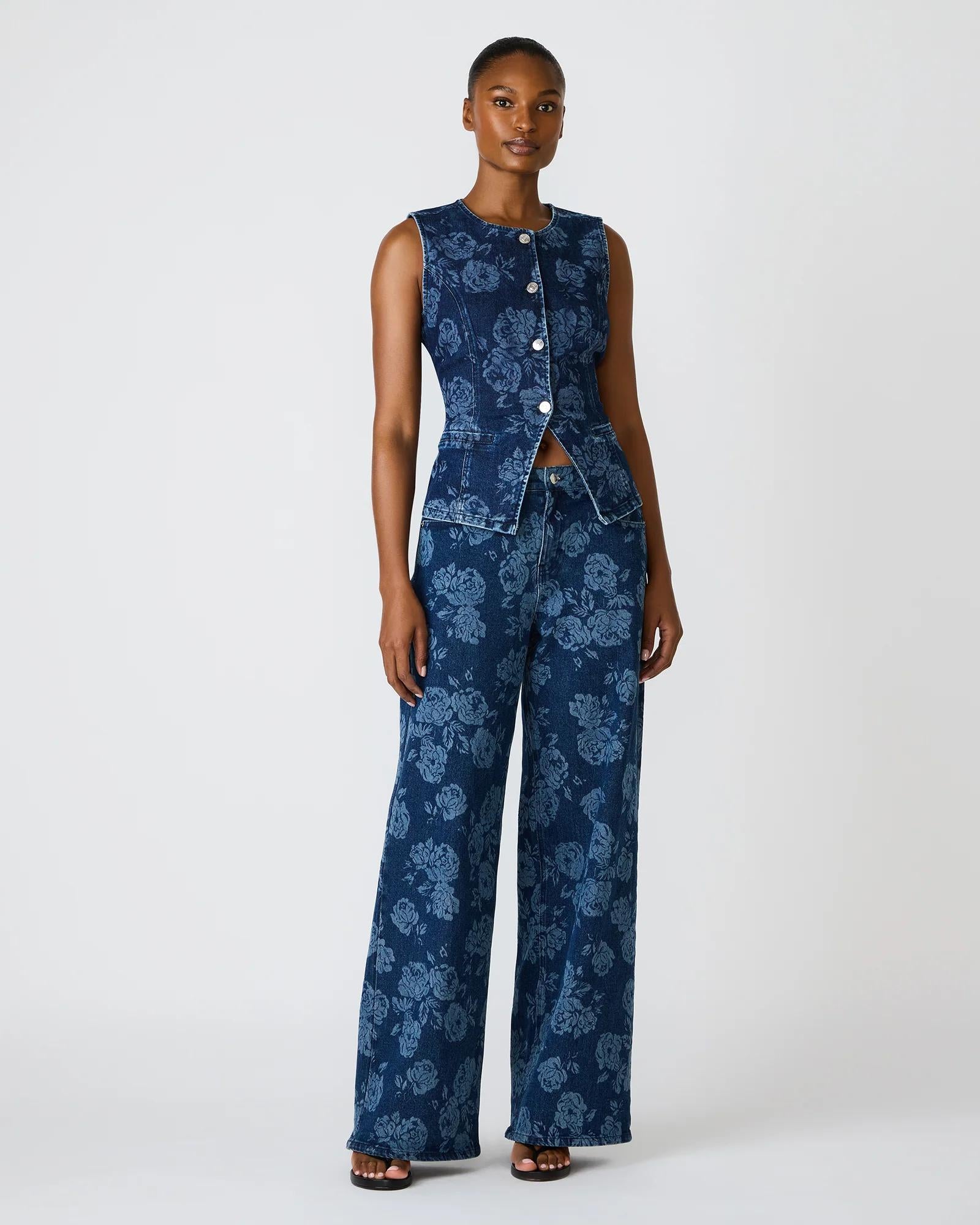 The Wesley top combines timeless denim construction with an unexpected floral print, creating a versatile piece that transitions effortlessly from casual to dressed-up occasions. This sleeveless button-up features a structured silhouette that flatters multiple body types, while the delicate rose pattern adds visual interest without overwhelming your look. Perfect as a standalone statement piece or layered under jackets and cardigans, it pairs seamlessly with the matching set for a coordinated aesthetic. The durable denim fabric ensures longevity, making this a reliable investment for your everyday wardrobe.